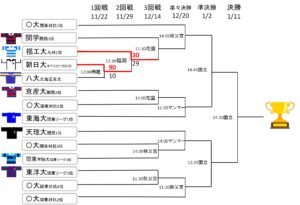 | 筑波大 | ●3-39 | 〇18-14 | 〇28-24 | 〇21-12 | 12/6 | |